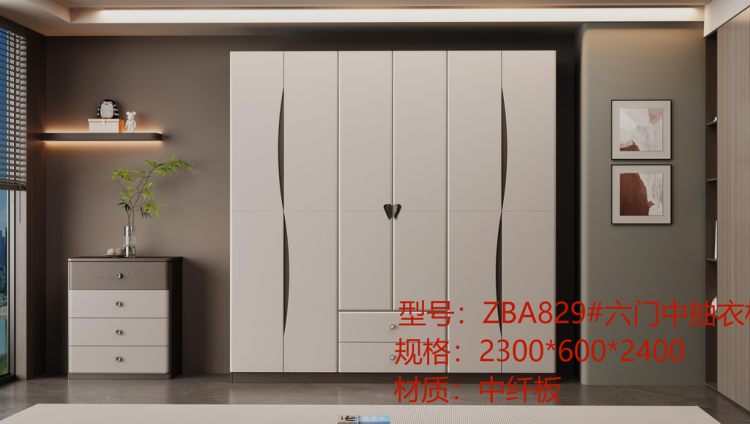 ZBA829#六门中抽衣柜/2300*2400